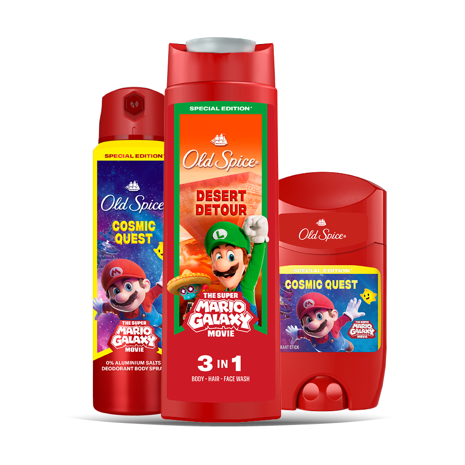 Postani superjunak in se podaj na najbolj galaktično misijo leta! V kino prihaja film Super Mario Galaktični film in z njim omejena kolekcija izdelkov Old Spice z najbolj priljubljenimi junaki Gobjega kraljestva. Privošči si galaktično svežino, ki traja cel dan, in sodeluj v nagradni igri.